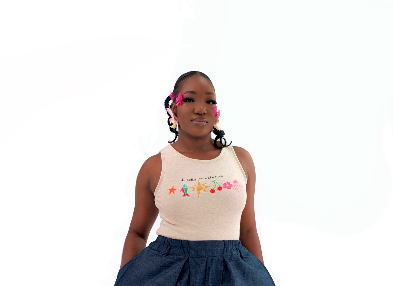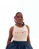 A hand painted soft and stretchy beige tank top, with vibrant art details.