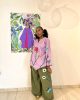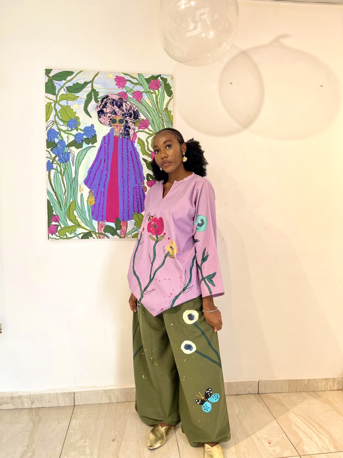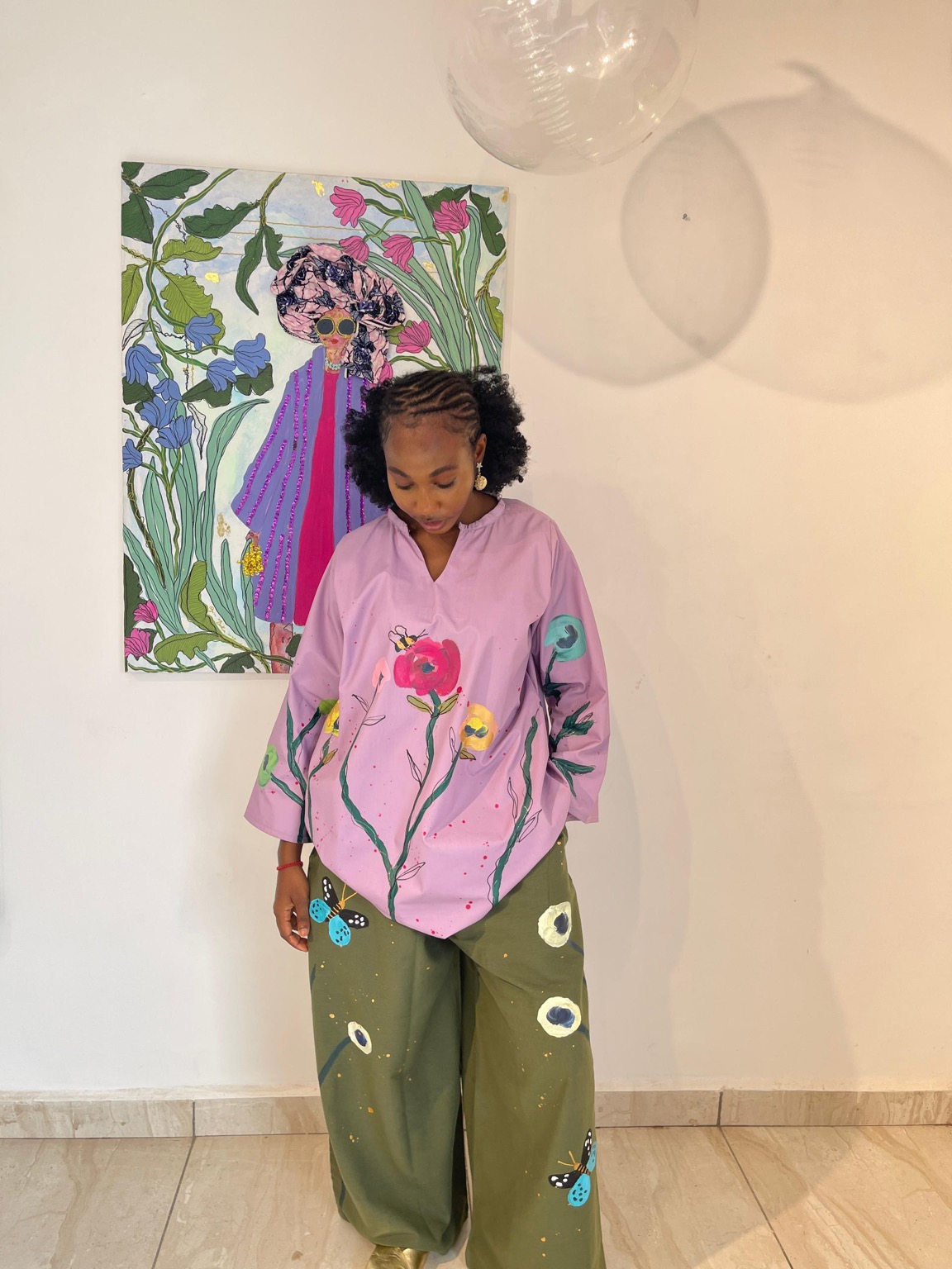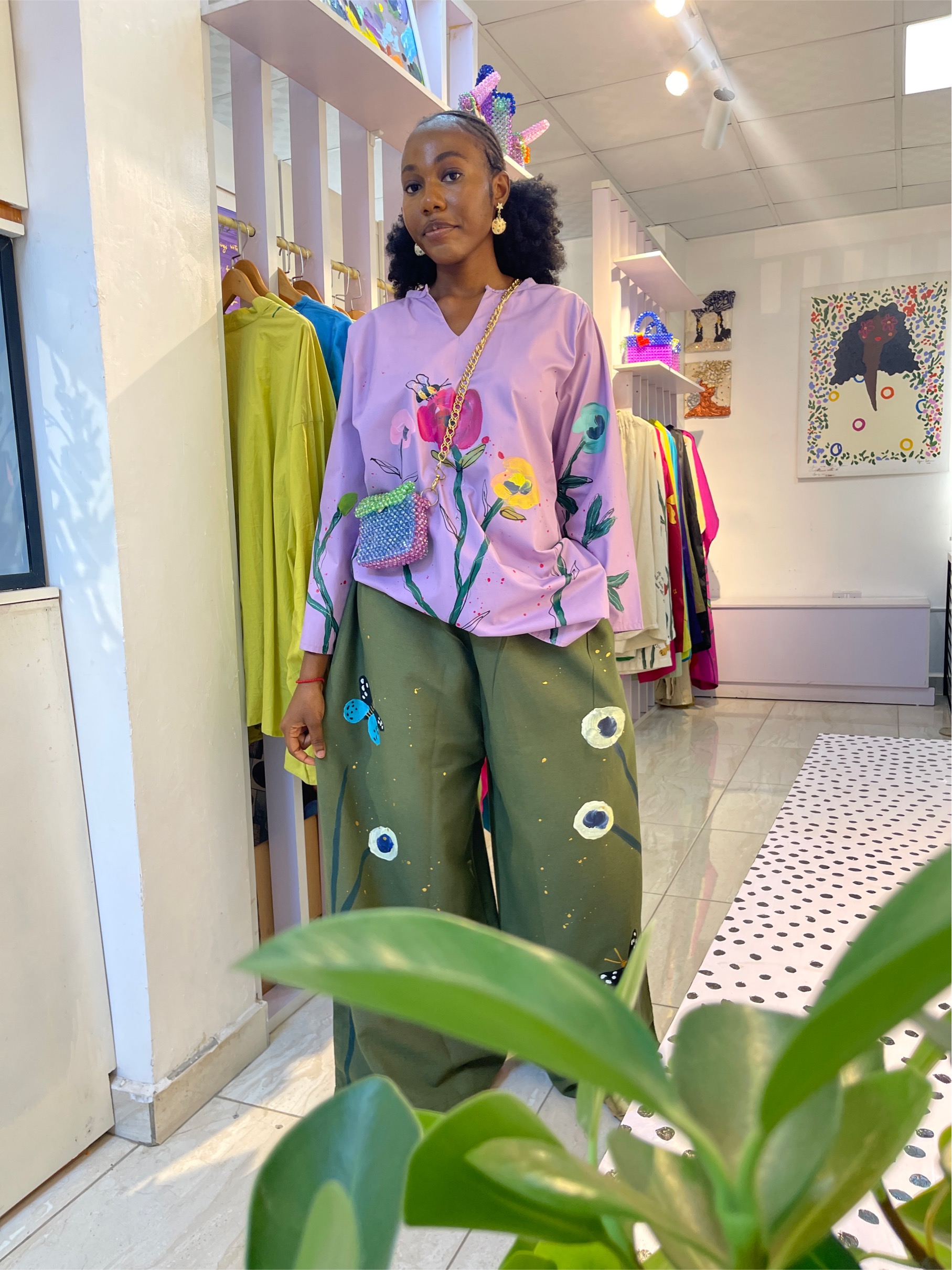 Lavender shift dress, with butterflies and a quote and comes with side pockets.